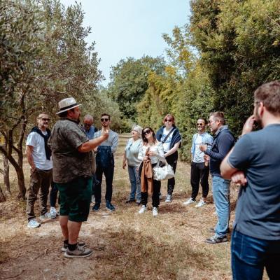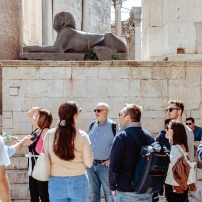 On the first day of the visit, after the tourists arrived by overnight ferry from Italy, a guided tour of the old city center of Split and Diocletian's Palace was organized, and the tour was adapted for blind and visually impaired people. After the tour, the group visited the family olive farm, where they had a tour of the olive grove, followed by olive oil tasting and a traditional lunch. The day ended with a trip to the interior of Dalmatia and the town of Sinj, where the participants of the exchange visited the Sinj Alka Museum, which presents the centuries-old heritage related to this knight game, including Alkar uniforms, equipment, and weapons with multimedia installations. Tourists were allowed to touch the exhibits.